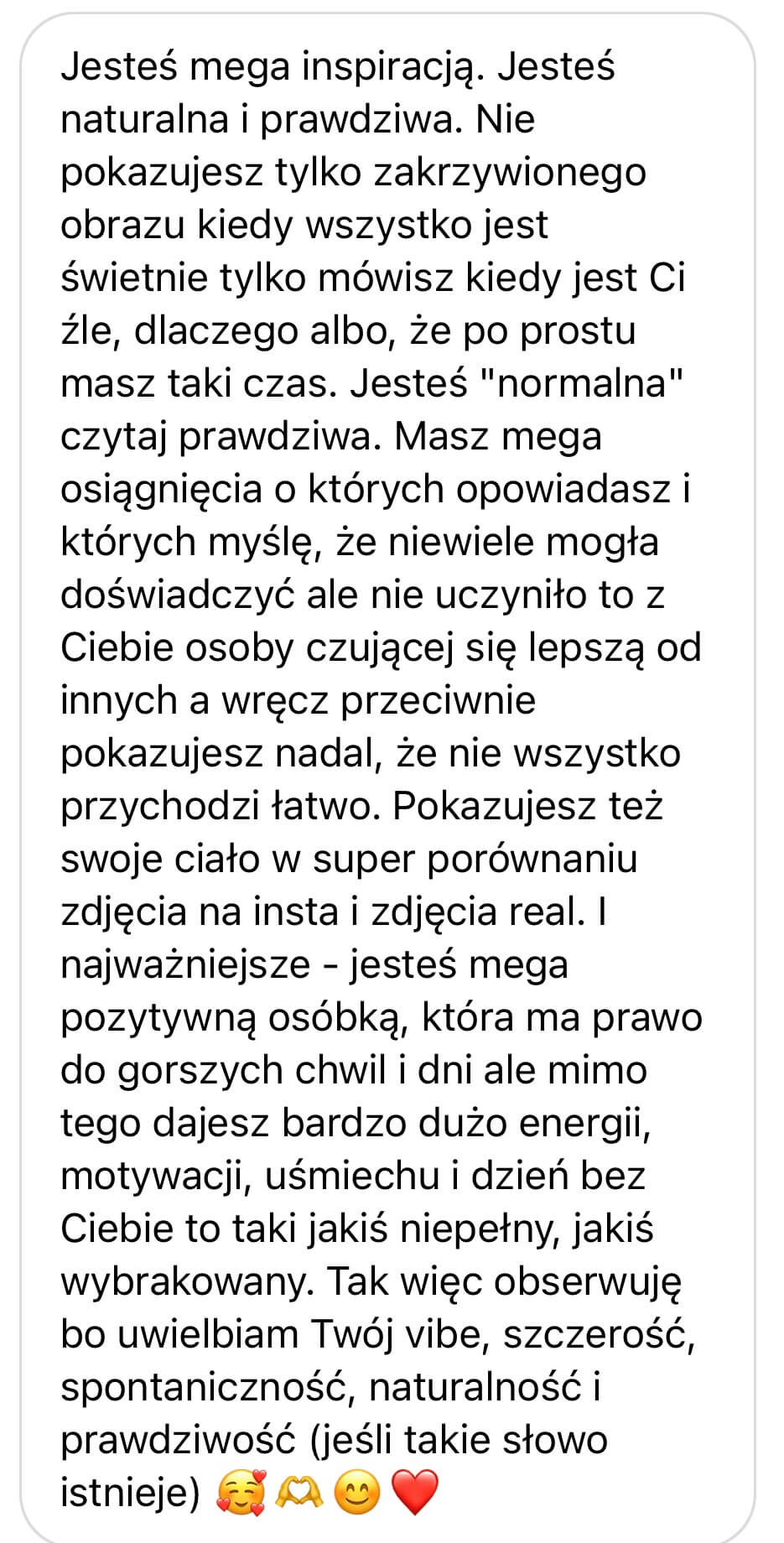 Przez lata byłam obolała, zmęczona i sfrustrowana, narzekając na swoje życie. Teraz celebrowanie każdego dnia stało się dla mnie ważne, zaczynając od prostych przyjemności, jak poranna kawa. Przebudowałam swoje życie, zmieniając relację z własnym ciałem, jedzeniem i podejściem do życia. Cieszę się każdym dniem, czerpiąc z niego pełnymi garściami i nie martwiąc się już o wygląd. Moje ciało jest teraz zdrowe i silne, wyglądam tak, jak chcę, bez restrykcji i reżimów dietetycznych. Regularnie uprawiam sport i chcę zarazić Cię tą pozytywną energią. Pokażę Ci, że można żyć lepiej. Jeśli ja to osiągnęłam, Ty również możesz!